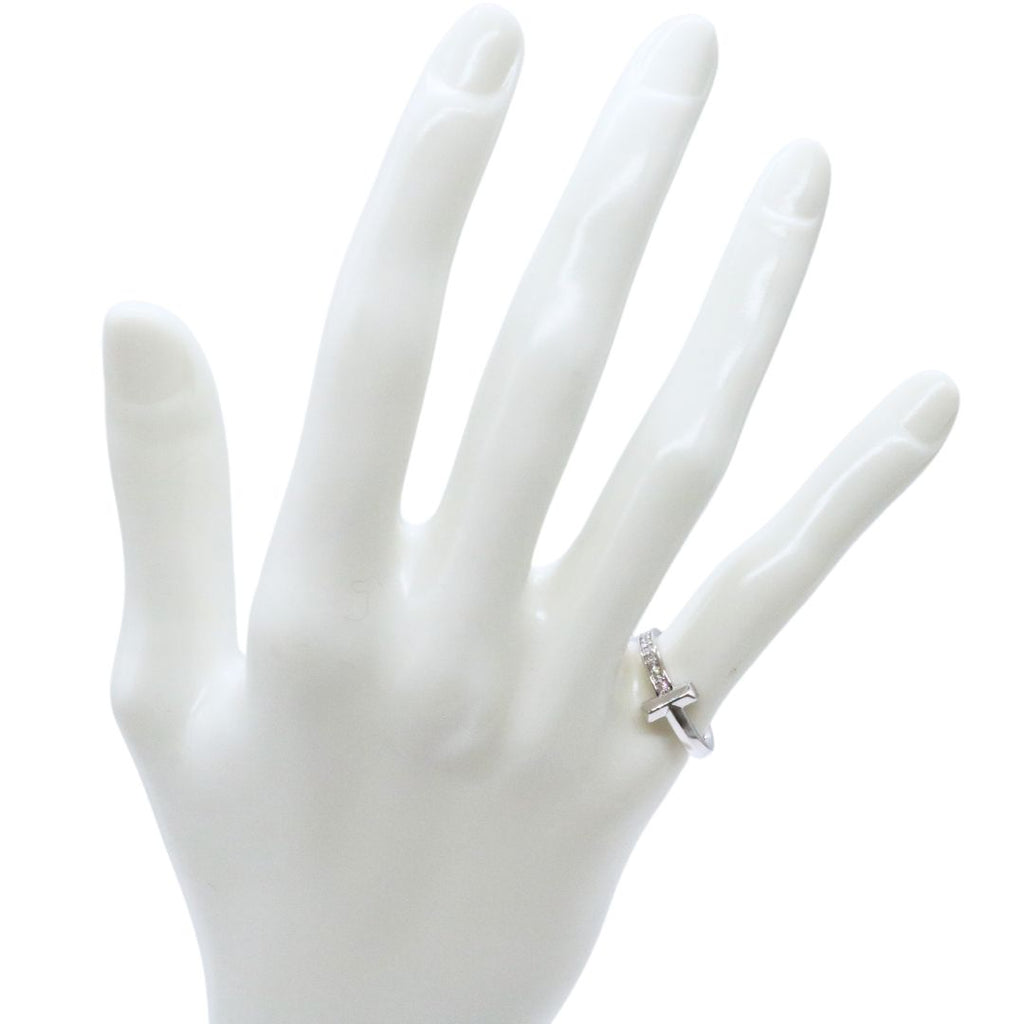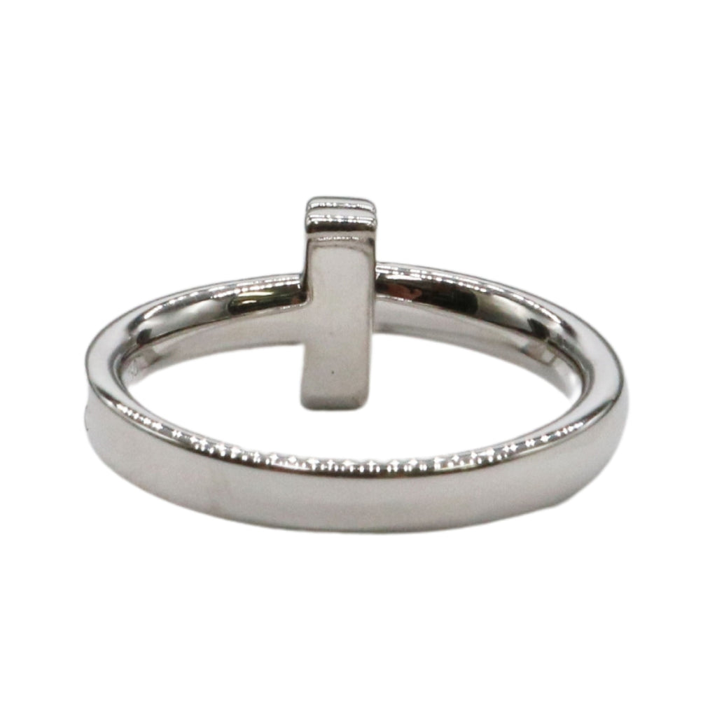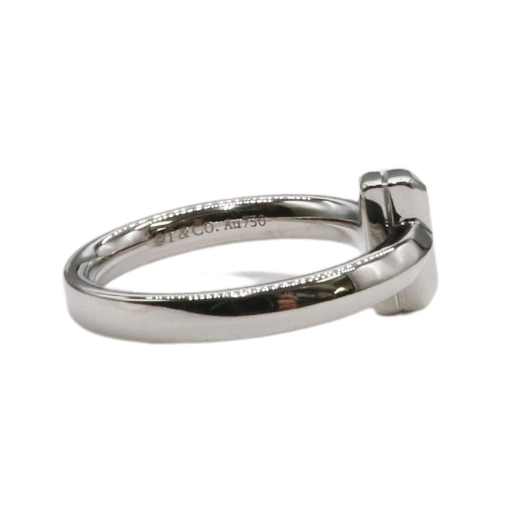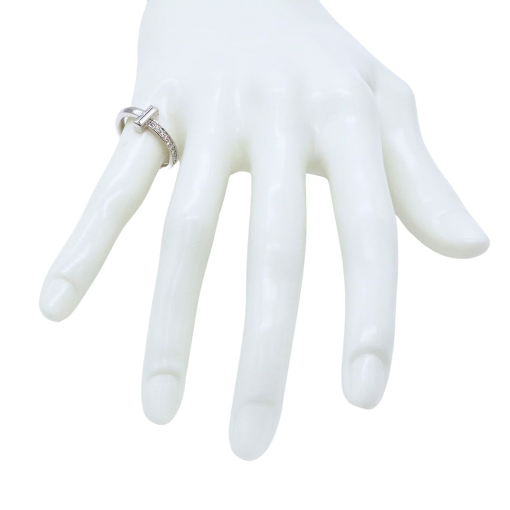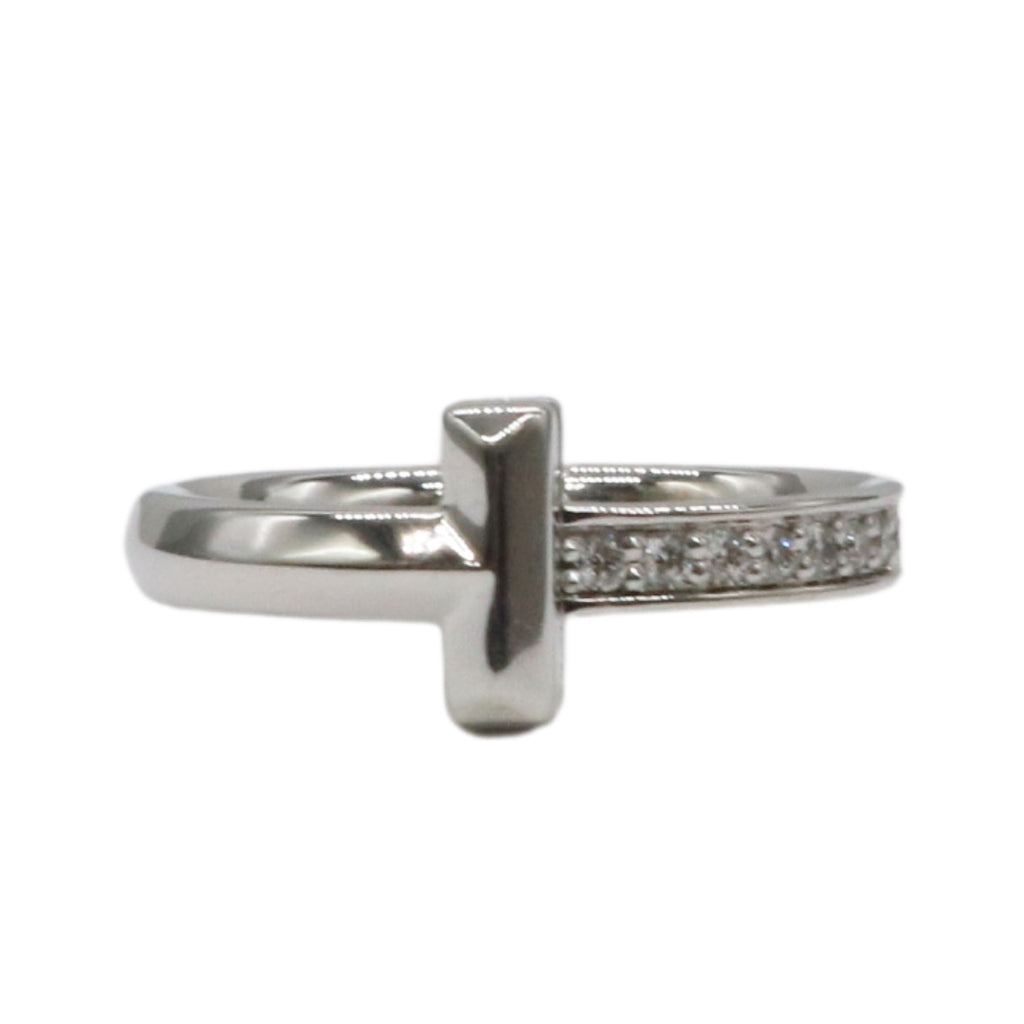 人気のティファニーTコレクション。片側に施されたきらめくパヴェ ダイヤモンドが、リングに優美な輝きを添えるデザインです。