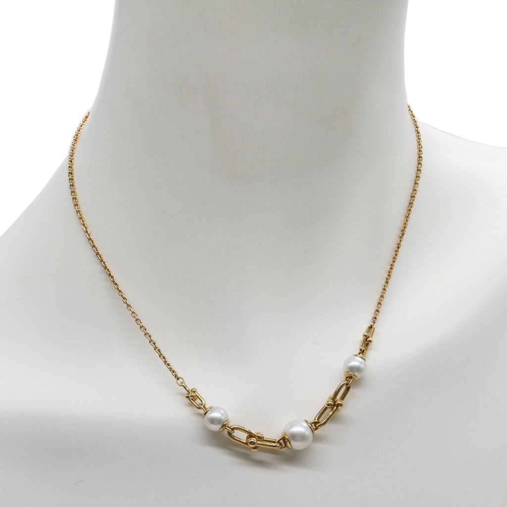 ゲージリンクとフレッシュ ウォーター パールが特徴的なネックレスです。