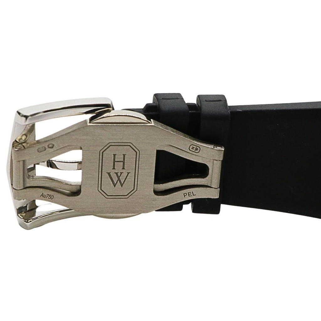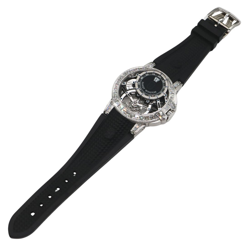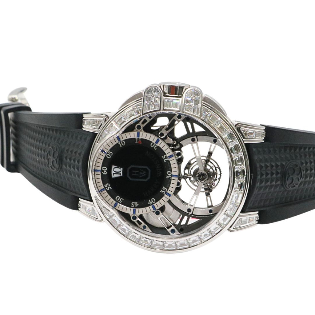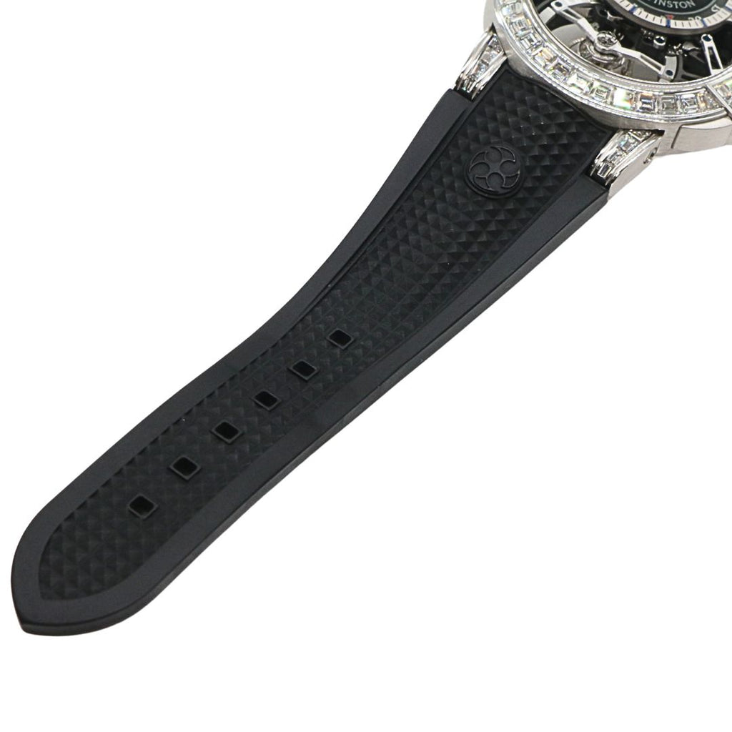 6時側にトゥールビヨンを配し、12時側にジャンピングアワー式の文字盤を配置し、ケースには約6.25ctのバゲットカットダイヤモンドがセッティングされております。
